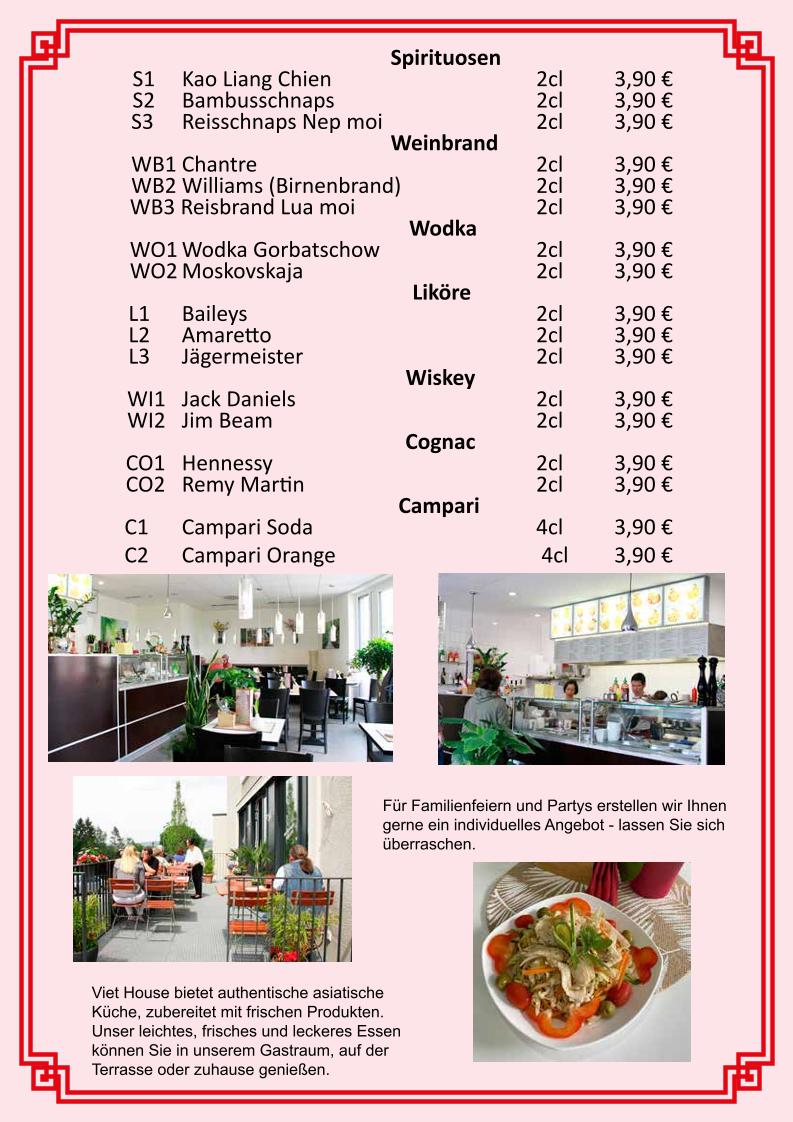 Customer experiences speak volumes about the charm of VIET HOUSE. With a wide range of offerings, including crispy Frühlingsrollen (spring rolls), delectable Shanghai Ente (Shanghai duck), and the generous Bambo Teller, diners are treated to a symphony of flavors that evoke the essence of Vietnamese cuisine. One customer, tommy67pa, stated, "Das Essen warm und geschmacklich top," highlighting not just the quality but the care with which each meal is prepared.